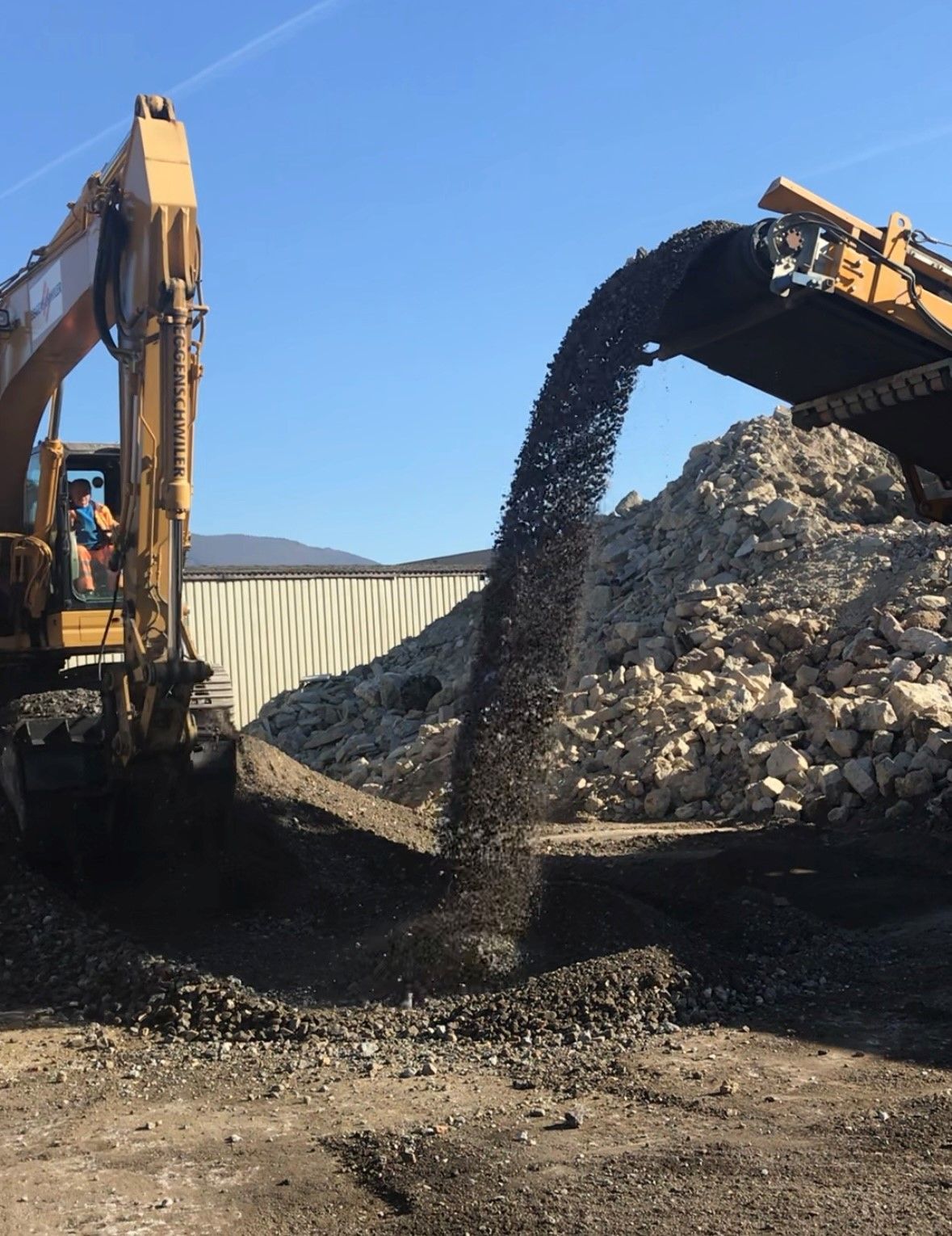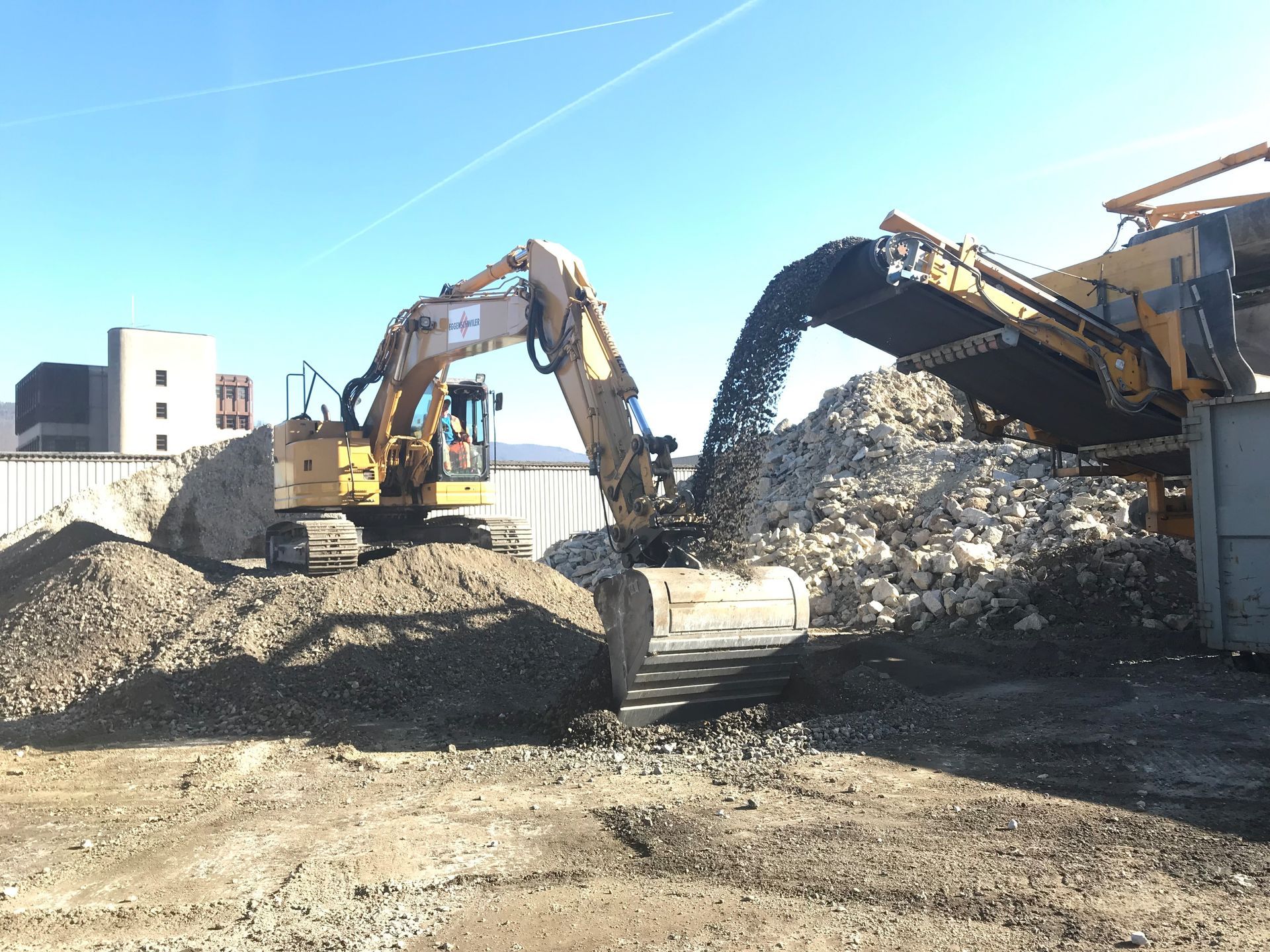 Recycling ist ein wesentlicher Bestandteil unserer Bemühungen um den Schutz der Umwelt. Wir verarbeiten, Beton, Kies und Natursteine materialgerecht und sicher. Die Baustoffe werden im Werkhof mit einer Prallmühle zerkleinert, aufbereitet und anschliessend der Wiederverwendung zugeführt.