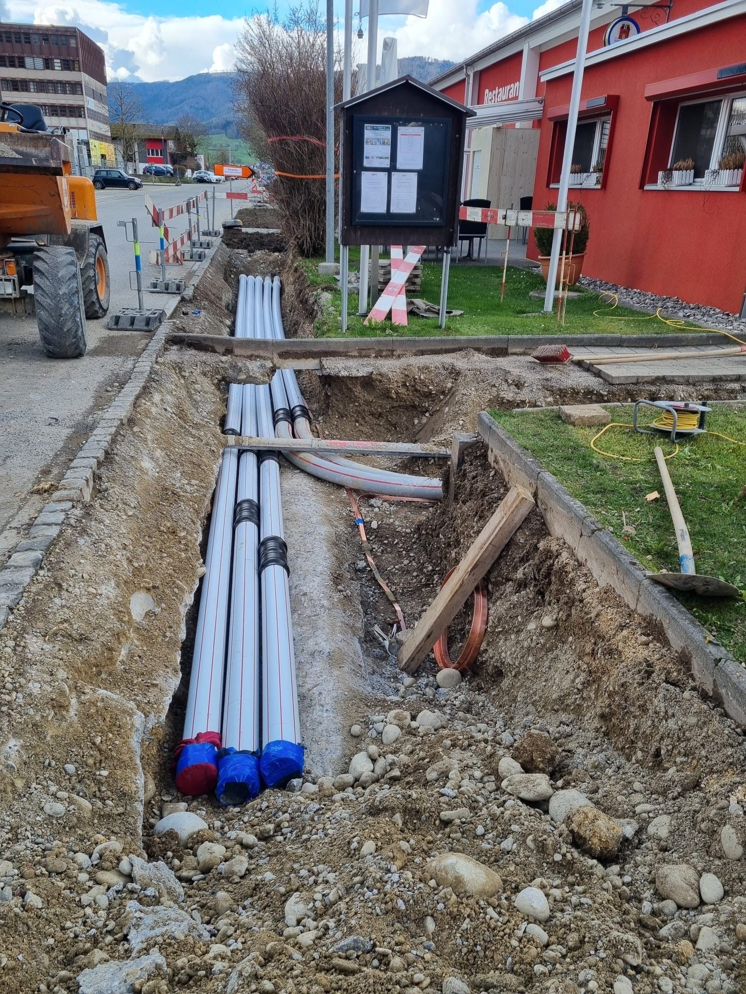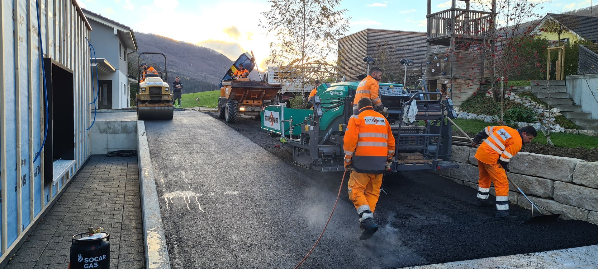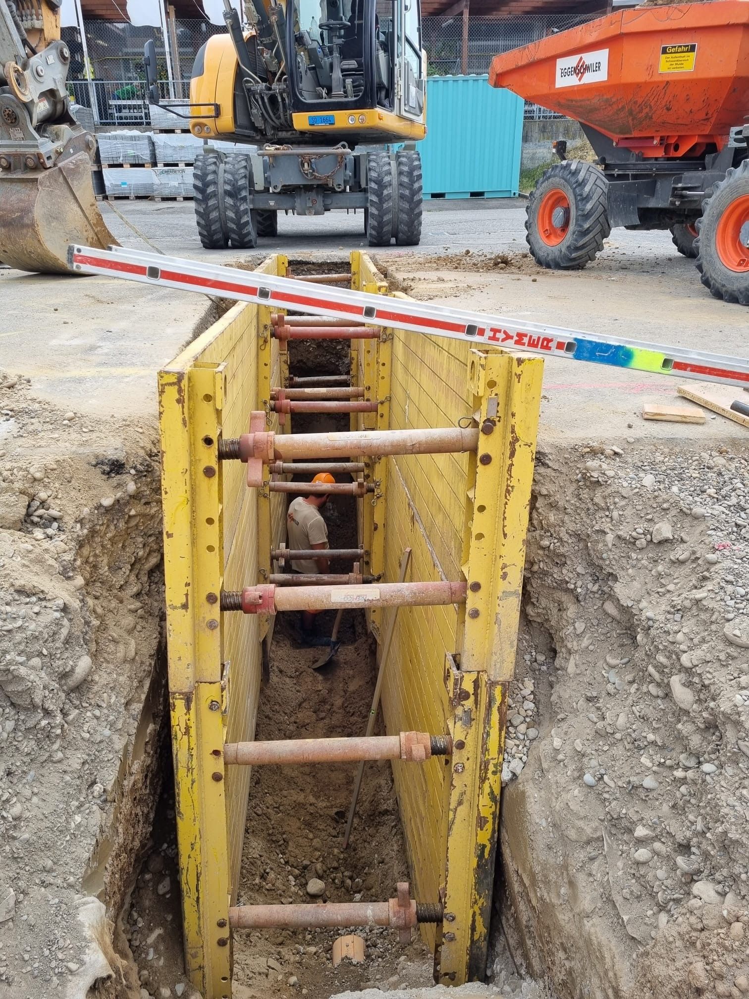 Unser Leistungsspektrum: Sanierungen von Werkleitungen, neue Strassenerschliessungen inkl. Belagsarbeiten, Wasserleitungsbrüche.