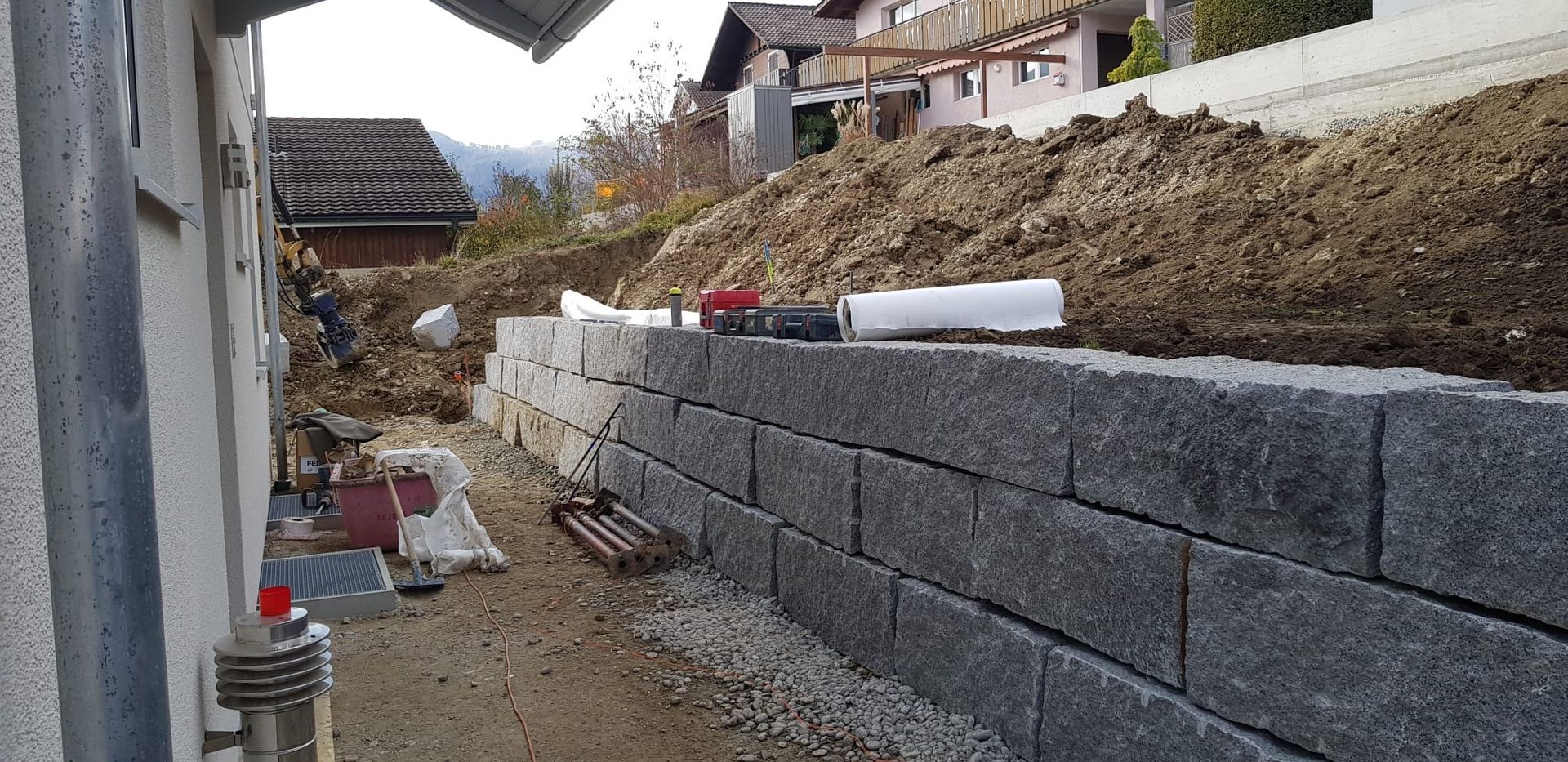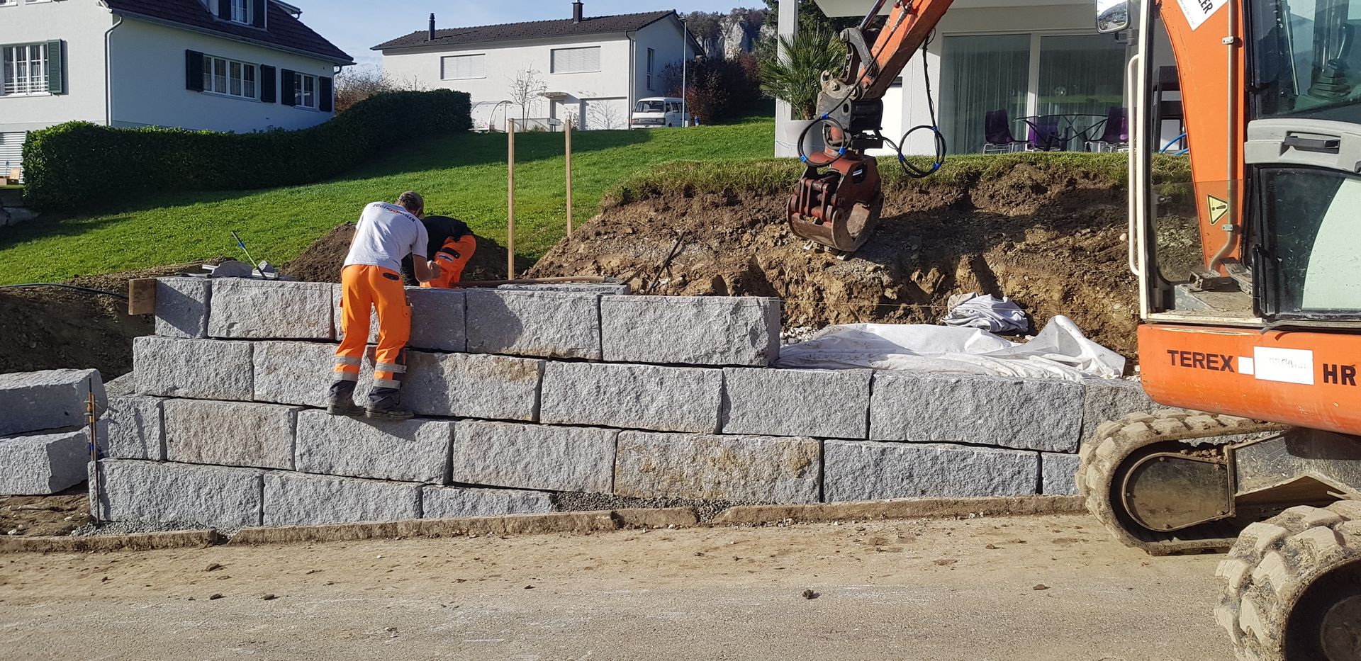 Unsere Fachleute führen Natursteinmauern, Verbundsteinplätze, Belagsarbeiten sowie sämtliche Umgebungsarbeiten ohne Bepflanzung für Sie aus.